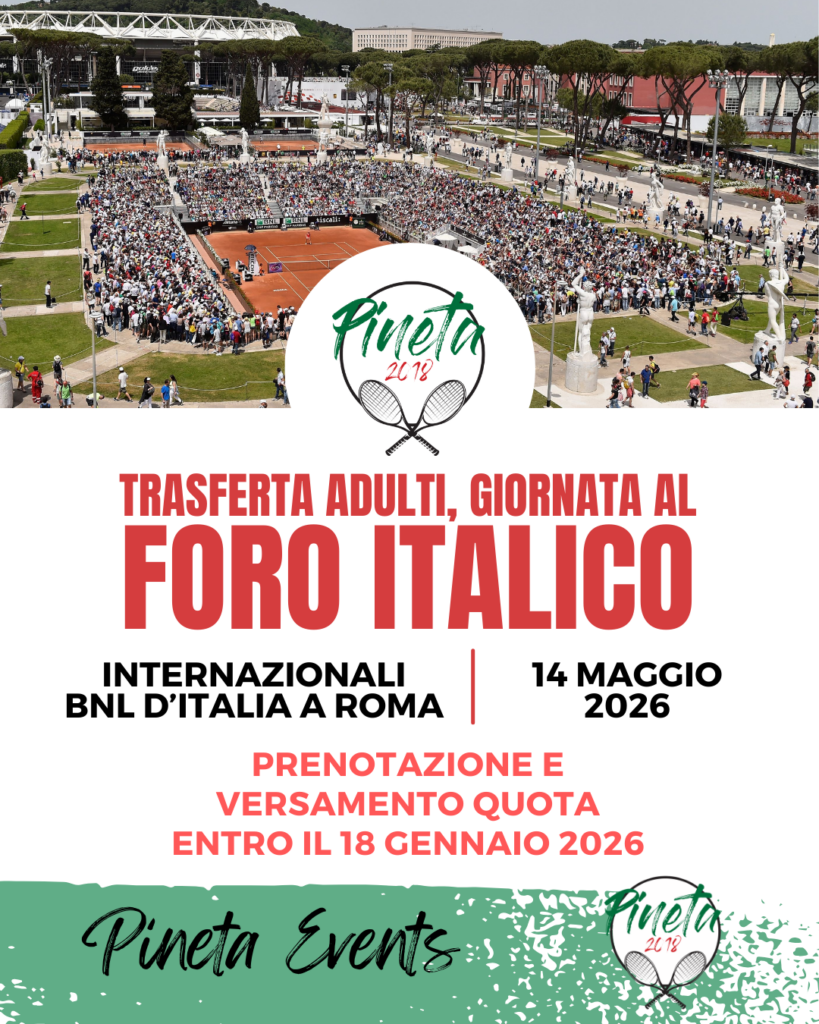 Assisteremo alle Internazionali BNL d’Italia, quarti di finale maschile e semifinali femminile, iscrizioni e versamento quota entro il 18 Gennaio 2026 (Maestro Gianmaria Ruffo)