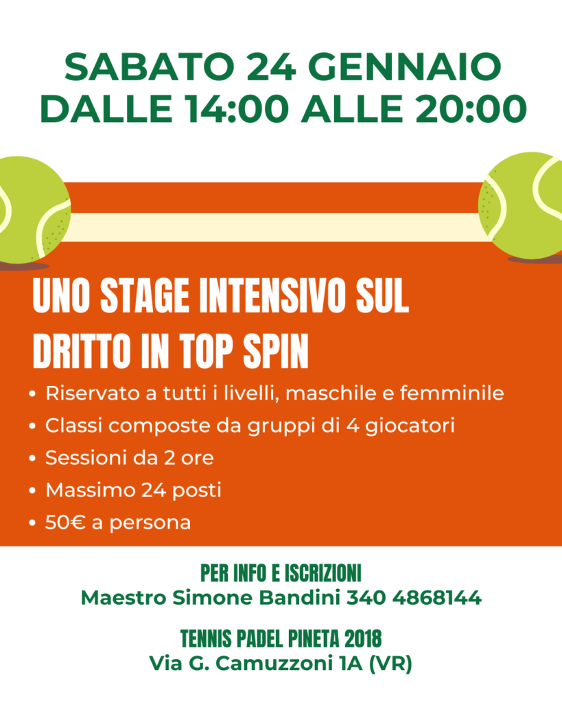 • MASTERCLASS DRITTO IN TOP SPIN – 24 Gennaio 2026: uno stage intensivo con il Maestro Simone Bandini