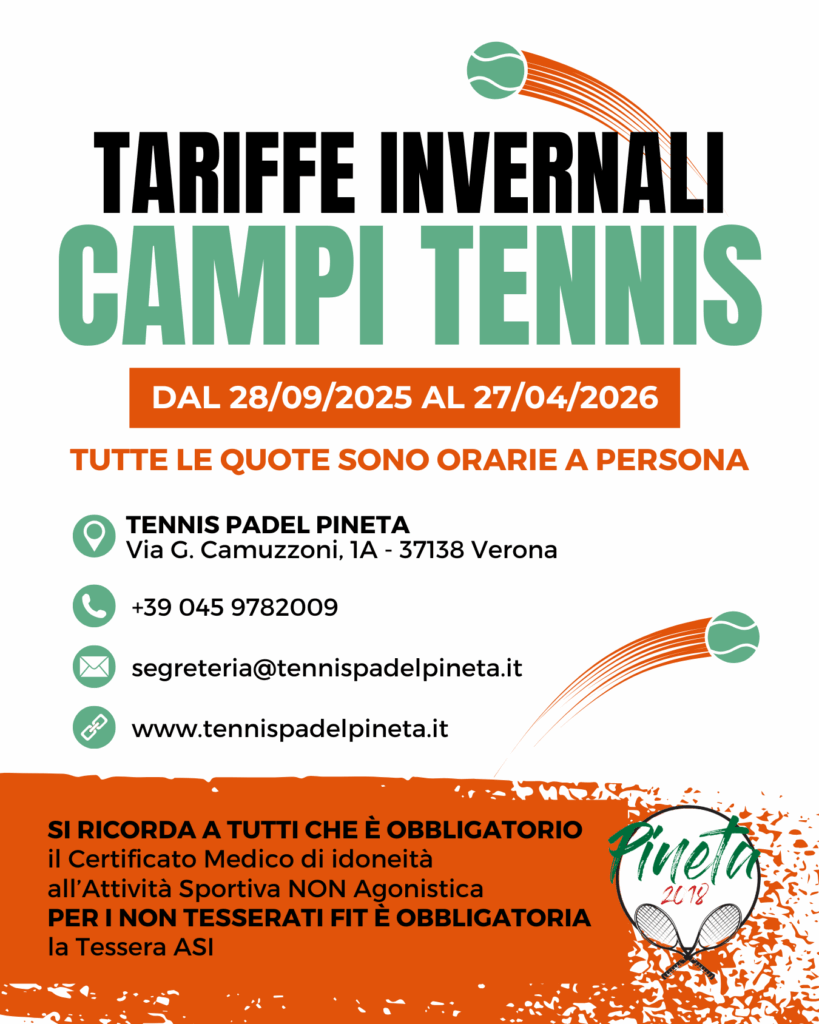 prenotare via mail segreteria@tennispadelpineta.it oppure chiamando al +39 0459782009