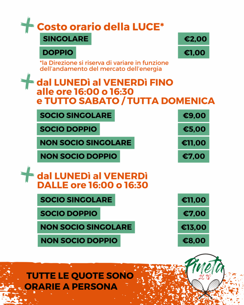 prenotare via mail segreteria@tennispadelpineta.it oppure chiamando al +39 0459782009